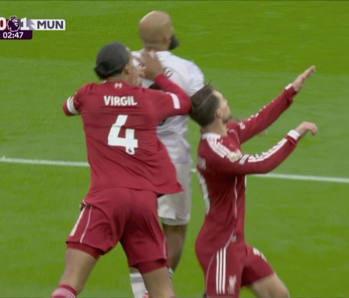 盟军误伤😱范迪克争顶中肘击麦卡利斯特,之后曼联闪电进球