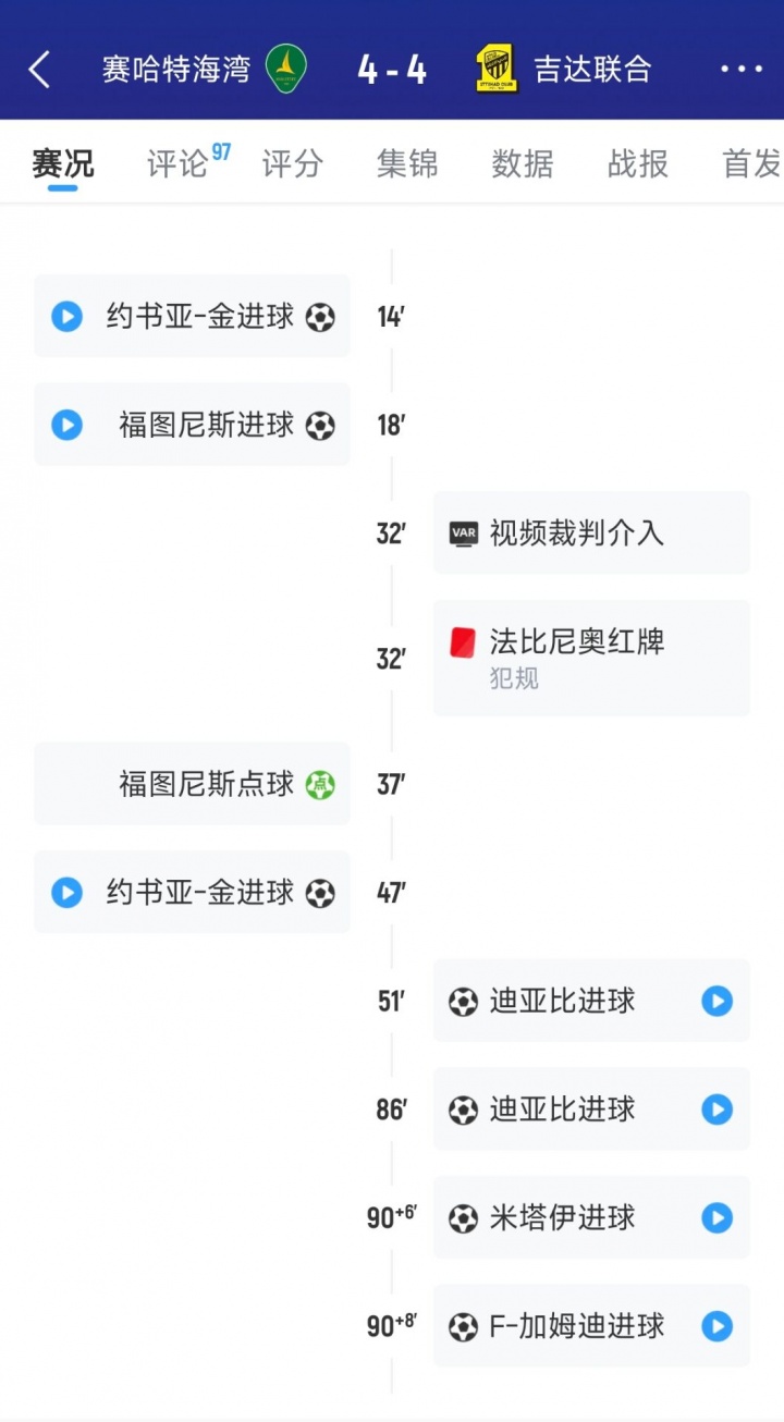 炸裂😨10东说念主吉达聚首演出半场让4追4,补时连进2球孝顺逆天绝平