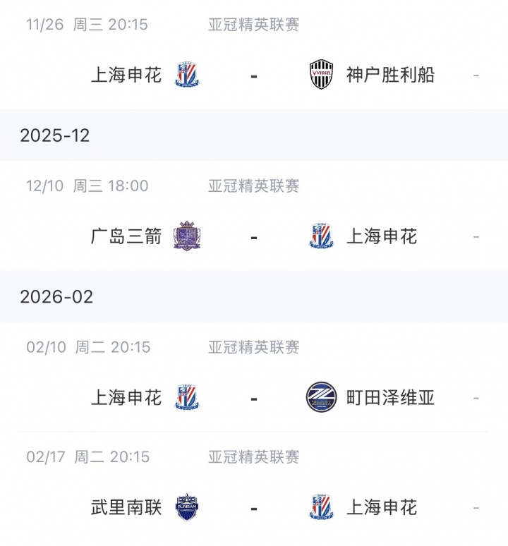 上海申花,上场亚冠精英联赛1-3输给柔佛新山,当今亚冠1胜1平2负积4分暂列小组第10,还剩4轮亚冠精英联赛比赛