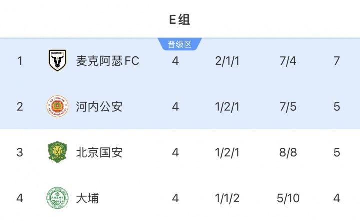 北京国安上轮亚冠二级联赛3-0大捷大埔,保留晋级淘汰赛但愿,当今在亚冠二级E组1胜2平1负,和小组第二河内公安队同积5分,暂列E组第3。
