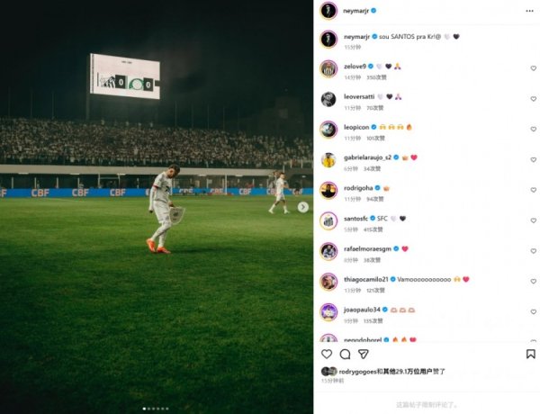 打满全场助球队绝杀取胜,内马尔社媒晒照:我是历久的桑托斯球迷