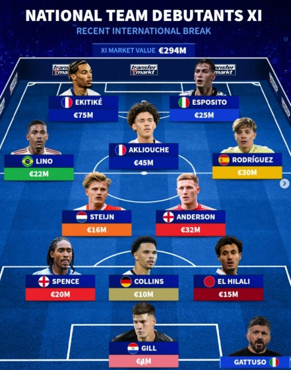 9月10日讯 德转清点了在本次国外比赛日迎来我方国度队首秀的11东说念主声势,其中埃基蒂克领衔,以下为具体声势: 吉尔(巴拉圭) 斯宾塞(英格兰)、柯林斯(德国)、希拉利(摩洛哥) 利诺(巴西)、施泰恩(荷兰)、阿克利乌舍(法国)、安德森(英格兰)、罗德里格斯(西班牙) 埃基蒂克(法国)、埃斯波西托(意大利)......查看更多