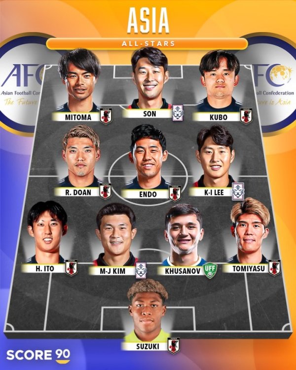 09月10日讯 足球媒体Score 90评比出亚洲的全明星气势,其中日本7东说念主入选,韩国3东说念主入选。吧友们合计这套气势实力若何? 锋线:三笘薰(布莱顿)、孙兴慜(洛杉矶FC)、久保建英(皇家社会) 中场:堂安律(法兰克福)、远藤航(利物浦)、李刚仁(巴黎圣日耳曼) 后卫:伊藤洋辉(拜仁)、金玟哉(拜仁)、胡桑诺夫(曼城)、富安健洋(解放球员) 门将:铃木彩艳(帕尔马)......查看更多