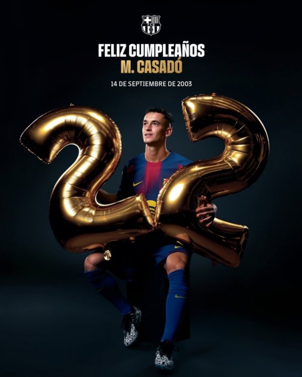 巴萨官方祝卡萨多22岁诞辰高亢,球员为巴萨出战42场1球6助