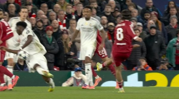 11月05日讯 利物浦vs皇马第31分钟,索博扣门击中琼阿梅尼手臂,裁判查验点球,VAR介入。 随后裁判看过VAR后莫得判罚点球!......查看更多