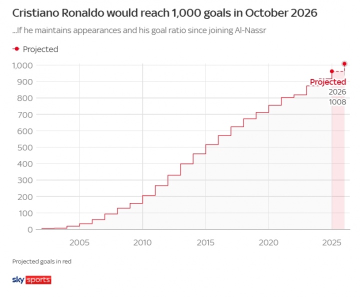 太空体育最近的预测裸露,字据C罗当今的进球效果,他展望将在2026年10月成为历史上第一位进球数达到1000的球员。