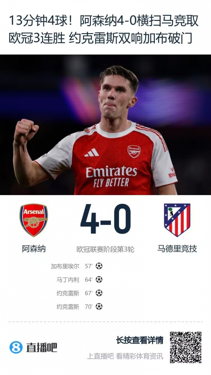 > 马德里之王!阿森纳上赛季总比分5-1双杀皇马,当天4-0大捷马竞