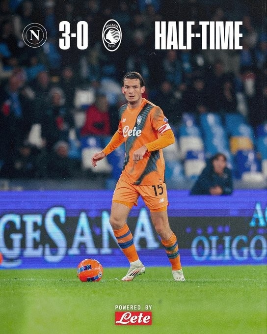 11月23日讯 本轮意甲焦点战,那不勒斯主场上半场3-0跳动亚特兰大。