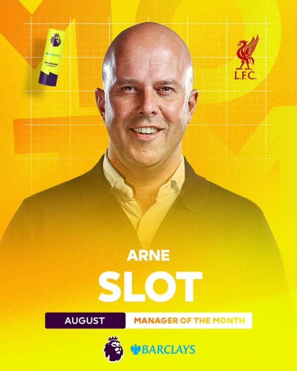 三战全胜领跑!官方:利物浦主帅斯洛特当选英超8月最好教悔
