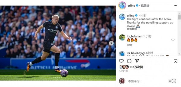 百场里程碑破门!哈兰德社媒:休赛期后斗殴不绝,感谢球迷的复旧