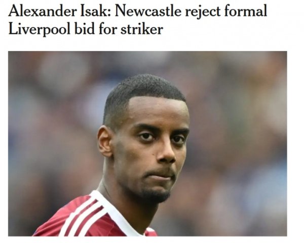 上树?罗马诺:利物浦报价伊萨克被拒,筹算再次报价