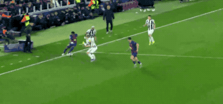 第51分钟,马丁的传送相当巧妙,拉菲尼亚中场圈附近不运球直接送出妙传,费尔明的攻踢羽毛羽排球排网框柱破门数,帮助巴萨扩大领先优势。