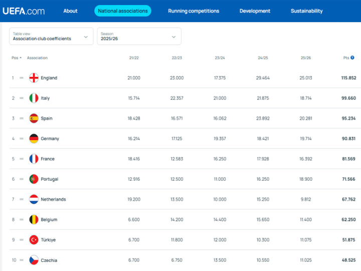 如果上升一位,则可以拥有完整的4个名额,不需要参加预选赛 ,例如本赛季的尼斯在附加赛出局,落入欧联杯,法甲只有3队进欧冠。如果下降一位的话,则失去一个直通名额,例如本赛季的荷甲,只有2队参加正式比赛,费耶诺德预选赛 出局,同样落入欧联杯。