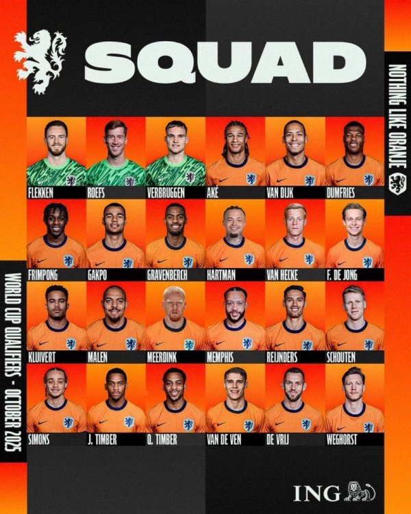 虎扑10月03日讯北京期间10月3日,荷兰国度队公布10月世初赛大名单,他们将于北京期间10月10日对阵马耳他以及10月13日对阵芬兰。 荷兰10月世初赛大名单 门将:弗莱肯(勒沃库森),罗埃夫斯(桑德兰),维尔布鲁根(布莱顿) 后卫:阿克(曼城),范戴克(利物浦),邓弗里斯(国外米兰),弗林蓬(利物浦),廷贝尔(阿森纳),范德芬(热刺),德弗赖(国外米兰),哈特曼(伯恩利),范黑克(布莱顿) 中场:昆滕-廷贝尔(费耶诺德),赫拉芬贝赫(利物浦),弗朗基-德容(巴萨),尤斯廷......查看更多