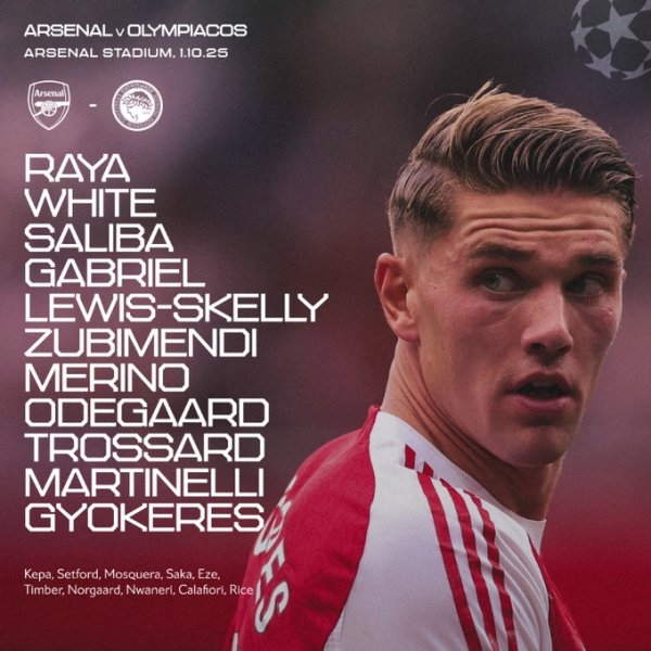 10月02日讯 欧冠第2轮,阿森纳vs奥林匹亚科斯首发出炉。比较上周末对阵纽卡的比赛,阿森纳本场比赛进行了6个位置的大交替,依旧排出了身价高达6.2亿的豪华首发威望。 阿森纳vs纽卡首发:1-拉亚、3-莫斯克拉、6-加布里埃尔、12-廷伯、33-卡拉菲奥里、36-苏维门迪、41-赖斯、10-埃泽、7-萨卡、14-约克雷斯、19-特罗萨德 阿森纳vs奥林匹亚科斯首发:1-拉亚、2-萨利巴、4-本·怀特、6-加布里埃尔、49-斯凯利、8-厄德高、36-苏维门迪、23-梅里诺、11......查看更多