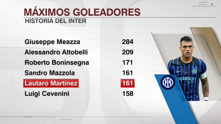 已是外传!劳塔罗为国米打进161球追平马佐拉,并列队史弓手榜第4