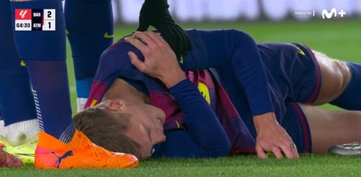 巴萨官方:奥尔莫左肩脱臼,决定保守休养,瞻望伤缺1个月