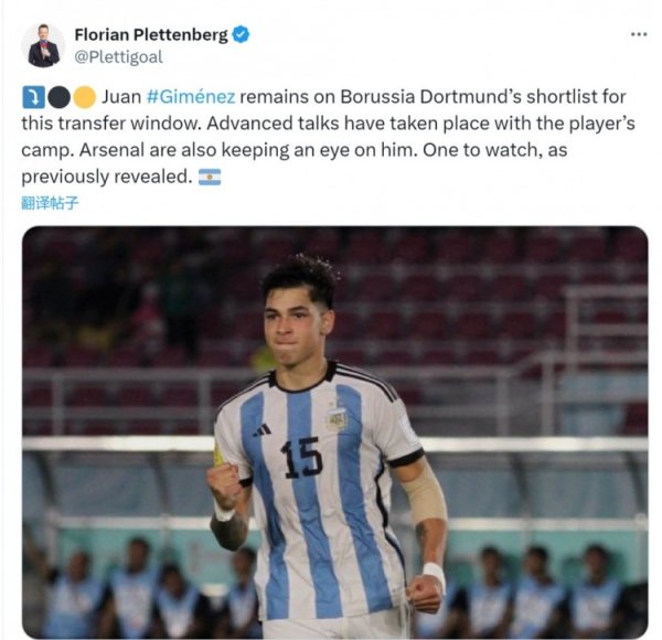 德太空:多特与阿根廷中卫希门尼斯真切探讨,阿森纳也见原球员