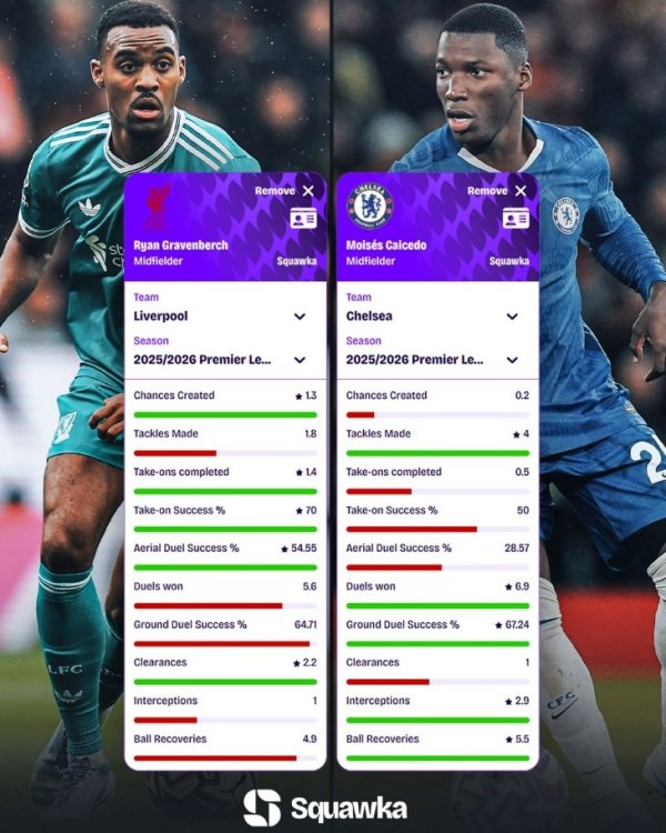 10月4日讯 本轮英超利物浦将迎战切尔西,数据网站Squawka也清点了两队中场铁腰赫拉芬贝赫与凯塞多在本赛季英超场均数据,具体如下: 赫拉芬贝赫vs凯塞多 创造契机:1.3-0.2 抢断:1.8-4 过东谈主:1.4-0.5 过东谈主顺利率:70%-50% 空中造反顺利率:54.55%-28.57% 得到造反:5.6-6.9 大地造反顺利率:64.71%-67.24% 突围:2.2-1 防止:1-2.9 赢回球权:4.9-5.5......查看更多
